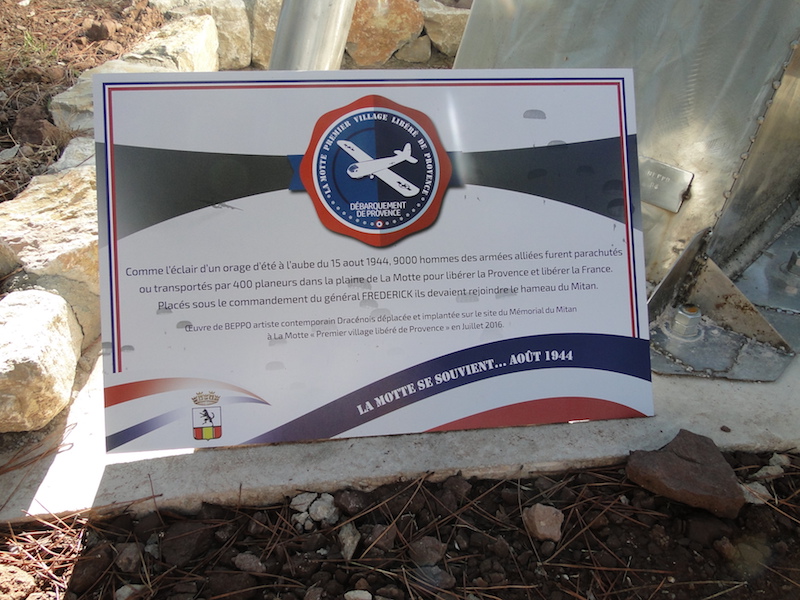 "Comme l'éclair d'un orage d'été à l'aube du 15 aout 1944, 9000 hommes des armées alliées furent parachutés ou transportés par 400 planeurs dans la plaine de La Motte pour libérer la Provence et libérer la France.