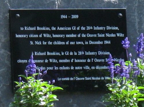 MonumentThe monument remembers a soldier of the 28th Infantry Division, Richard Brookins, who dressed as “St. Nick” on December 5, 1944, bringing back a holiday tradition to the town of Wiltz. The parade of St. Nick was organized by another 28th Division soldier, Harry Stutz who convinced Brookins to serve as St. Nick.