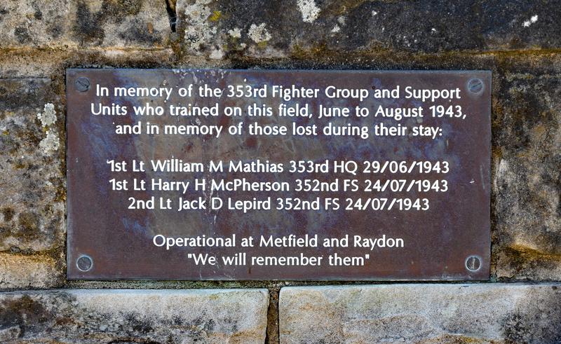 On the right side of the monument are two plaques commemorating the 353rd Fighter Group and support units who trained on the airfield and the other plaque in honor of 2LT Ferrara to whom the propeller blade of the monument was attributed.