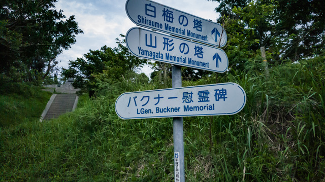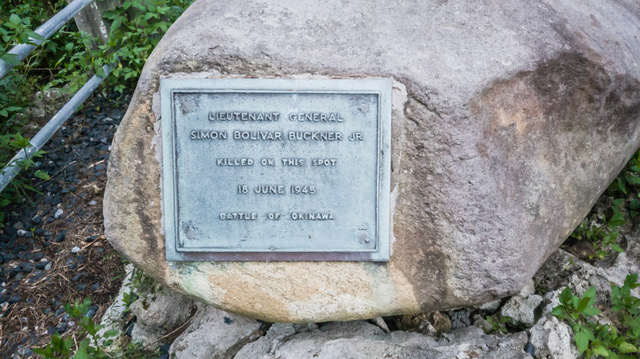 The memorial remembers LTG Simon Bolivar Buckner Jr. who was the Commander of the 10th Army, the Okinawa invasion force - Operation Iceberg in 1945.