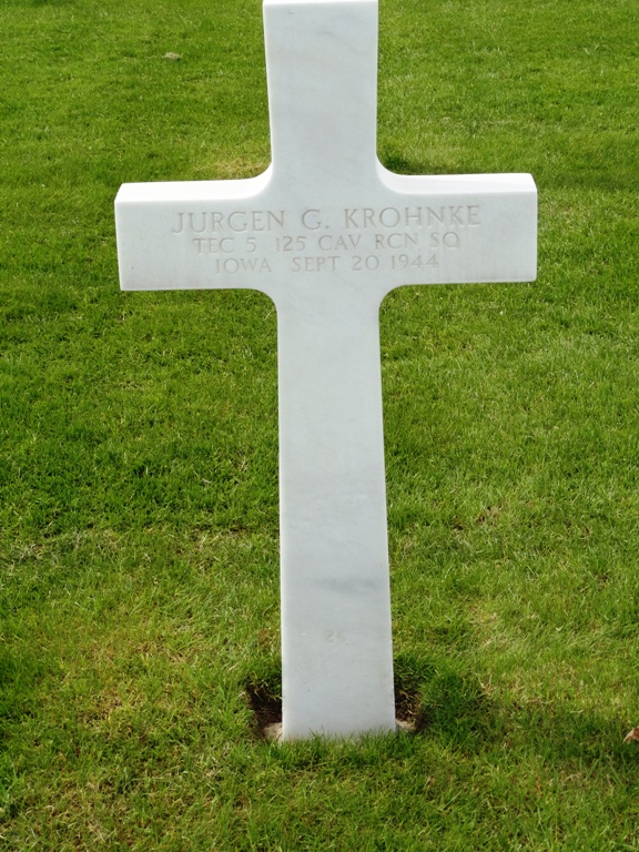 T5 Krohnke was from Schleswig, Iowa and was buried in the Henri-Chapelle Memorial and Cemetery in Belguim. A cenotaph remembers him in his hometown of Schleswig, Iowa.