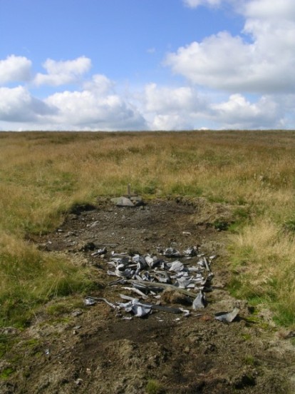 On the 2nd of January 1945, 1Lt. De Cleene, and a limited crew, flew to the 1st Base Air Depot at Burtonwood, near Liverpool to exchange their B-17 Flying Fortress for a newly arrived one. The crew boarded B-17G 43-38944, which had been assigned for the delivery to the 398th Bombardment Group, and took off at about 19:00hrs, heading back to Nuthampstead. The weather was fairly good with about 2 miles visibility and broken cloud at 3000 feet, however, it was dark and there was no snow lying on the ground. At approximately 19:25 the aircraft was heard by local farmers flying very low. The pilot had not gained sufficient height to cross the last hills of the Pennines and it flew into the western edge of the Birchenough Hill, on the Congleton to Buxton road, near the village of Wildboarclough, in the Peak District, close to a small quarry and broke up across the hill and burned out, with the loss of all on board. Three of the crew members are buried in the American Military Cemetery in Cambridge, England.