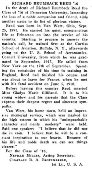 See Site Girvan-Doune Cemetery for the Isolated burials of Squires and Brader. Reed is also remembered on Paris Pershing Hall Princeton memorial.