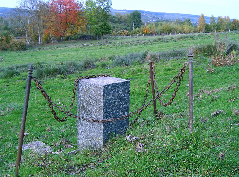 A large local inscribed stone with chains around it.