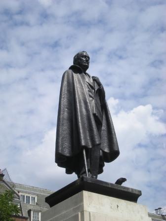 The northern of two memorials in the center of Grosvenor Square. Statue