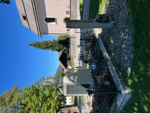 The monument remembers the August 3, 1944 air war over the Austrian Tyrol. Planes of the 15th US Air Force were returning from a bombing mission to Friedrichshafen when engaged in heavy combat over the Tyrol with eight B-24 bombers being shot down in the area. Per the memorial plaque, 30 crew members were killed and 49 survived to spend the rest of the war as POWs. The memorial also remembers eight German fighter pilots (lower plaque).