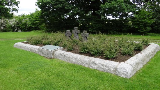 A mass grave in the center of the cemetery. Marker