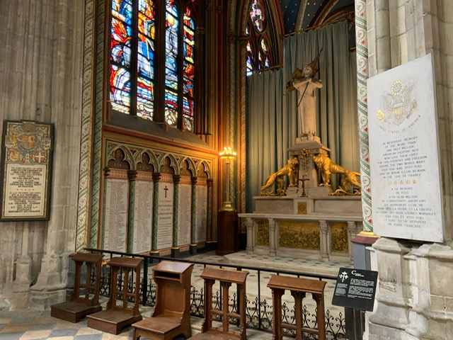 Next to an altar on the left side of the cathedral next to other similar plaques remembering war dead. Plaque