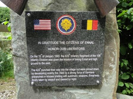 On the 15th of January 1945, the 424th Infantry Regiment of the 106th Infantry Division was given the mission of taking Ennal and high ground to the east. The 424th punched their way into the village but were pinned down by devastating enemy fire. Held by a strong force of Germans entrenched in houses bristling with automatic weapons, Ennal was finally taken by assault and cleared by night.