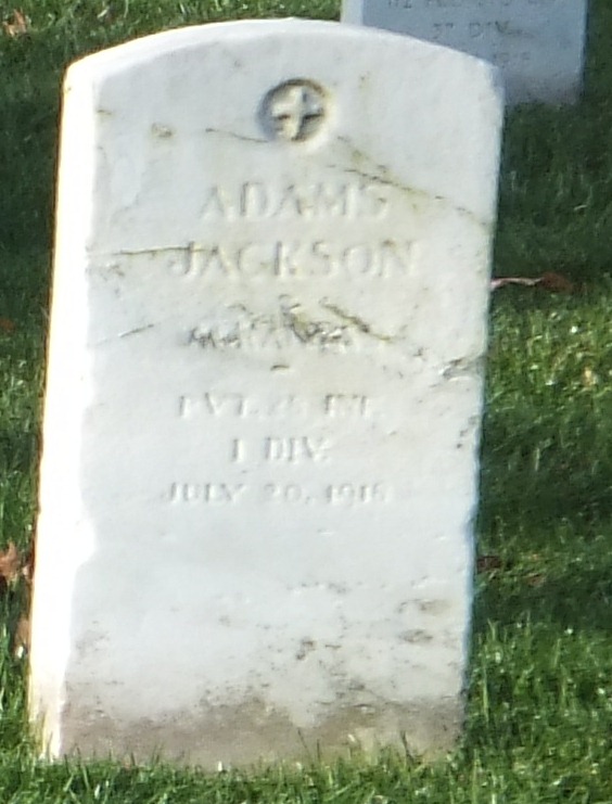 Adams Jackson served in the U.S. Army during World War I as a Private in Company L, 28th Infantry Regiment, 1st Infantry Division. He was Killed in Action on July 20, 1918 and is now buried in Arlington National Cemetery, Arlington, Arlington County, Virginia, USA.