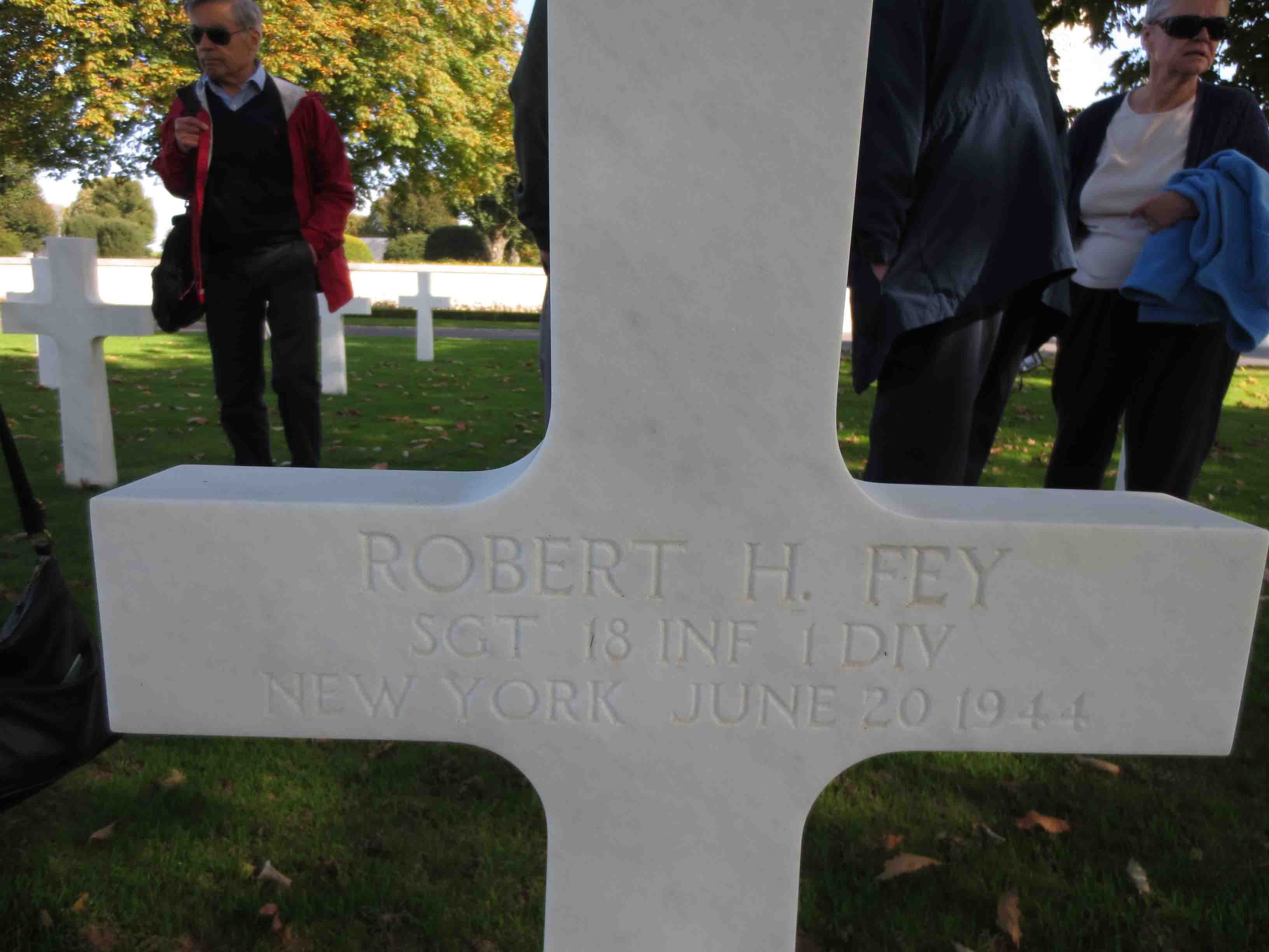 Robert H. Fey entered the military service in New York. He served in the U.S. Army during World War II as a Sergeant in the 18th Infantry Regiment, 1st Infantry Division. He died on June 20, 1944 and is now buried in Brittany American Cemetery, Montjoie Saint Martin, France.