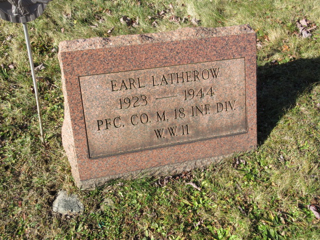 Earl G. Latherow was born on September 12, 1923. He served in the U.S. Army during World War II as a Private First Class in Company M, 18th Infantry Regiment, 1st Infantry Division. He died on June 6, 1944 during the invasion on Omaha Beach, France at the age of 20 and is now buried in Prospect Cemetery, Portage, Cambria County, Pennsylvania, USA.