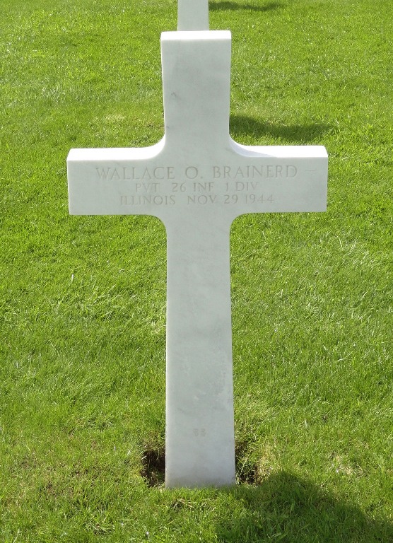 Wallace Orrin Brainerd was born on November 11, 1912 in Chicago, Cook County, Illinois. He was the son of Wallace Heber Brainerd and Bessie May Phelps Brainerd. Wallace served in the U.S. Army during World War II as a Private in the 26th Infantry Regiment, 1st Infantry Division. He died on November 29, 1944 and is now buried in Henri-Chapelle American Cemetery, Hombourg, Belgium.