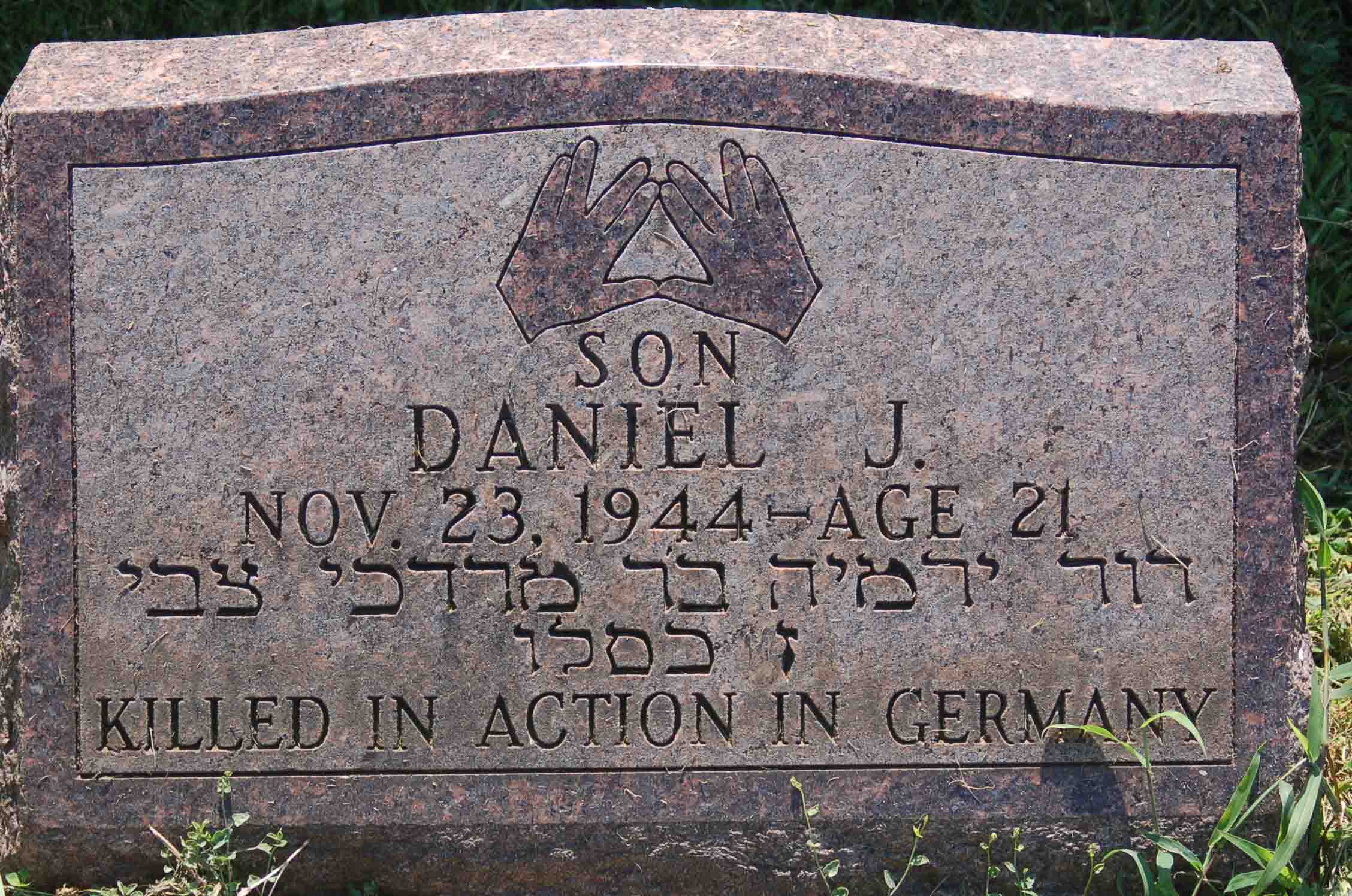 Daniel J. Goldstein was born in 1923 in Maryland. He was the son of Michael Goldstein and Rae Goldstein. He enlisted in the Army on March 4, 1943 in Baltimore, Maryland. He was noted, at the time of his enlistment, as being Single, without dependents. Daniel served as a Private, U.S. Army during World War II. He resided in Baltimore, Maryland prior to the war. He was Killed in Action on November 23, 1944 and is now buried in Beth Tfiloh Cemetery, Woodlawn, Baltimore County, Maryland, USA.