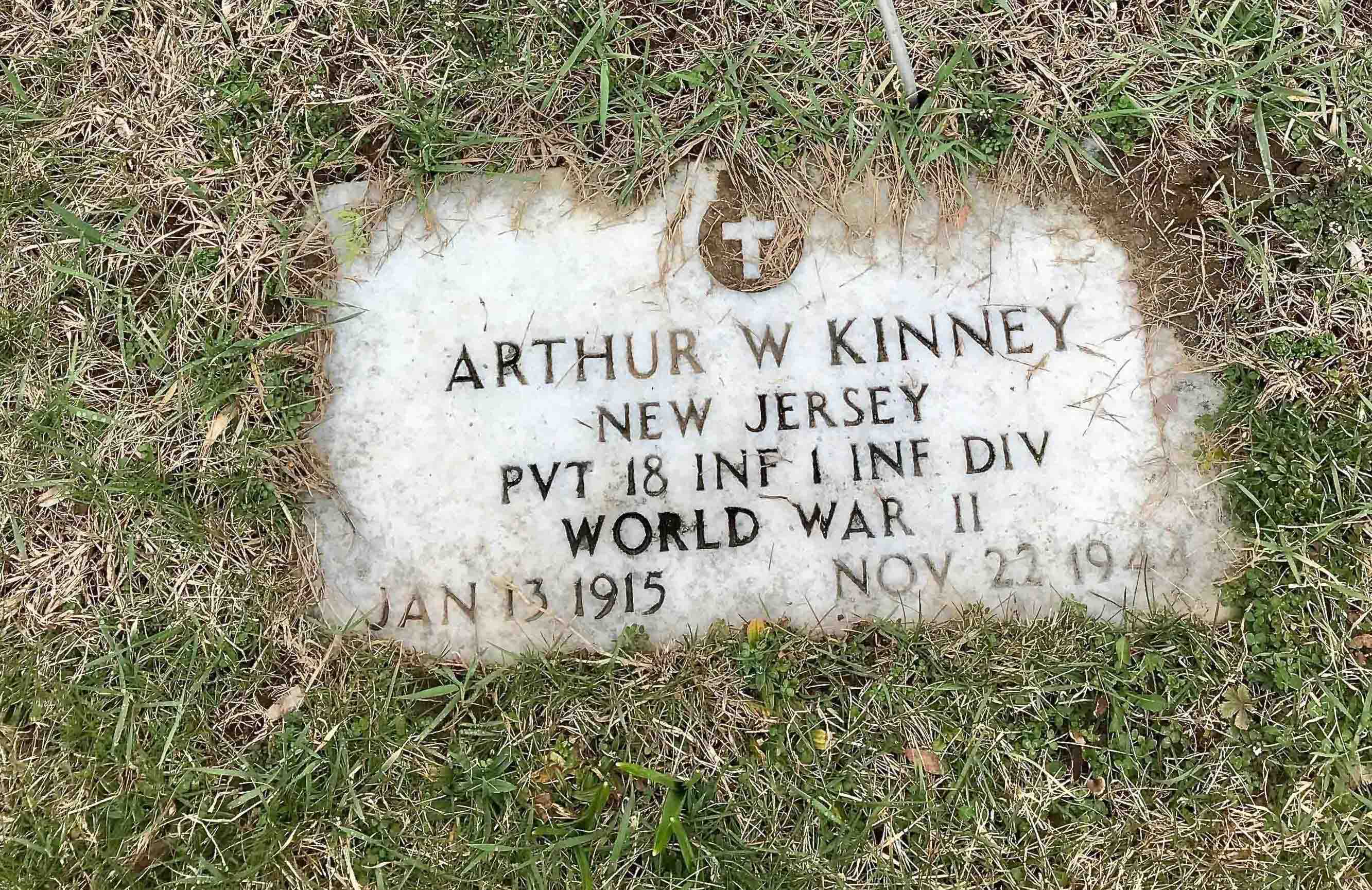 Arthur W. Kinney was born on January 13, 1915. He served in the U.S. Army during World War II as a Private in the 18th Infantry Regiment, 1st Infantry Division. He died on November 22, 1944 at the age of 29 and is now buried in Newton Cemetery, Newton, Sussex County, New Jersey, USA.