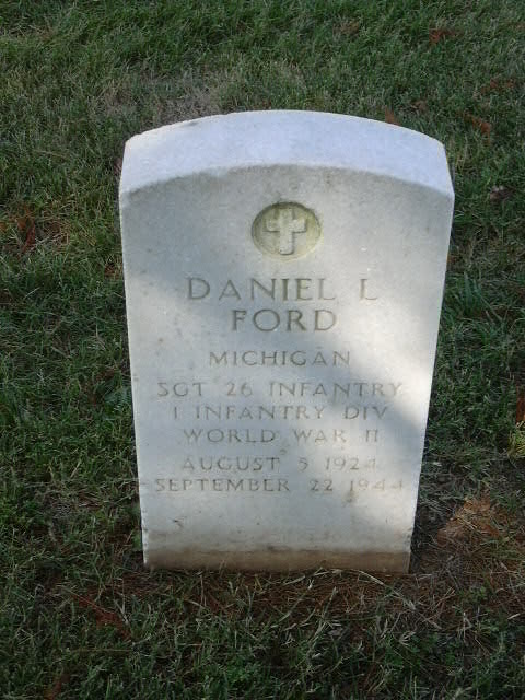 Daniel L. Ford was born on August 5, 1924 and reared in Detroit and attended public school there. He served in the U.S. Army during World War II as a Sergeant in the 26th Infantry Regiment, 1st Infantry Division. He was Killed in Action on September 22, 1944 at the age of 20 and is now buried in Springfield National Cemetery, Springfield, Greene County, Missouri, USA.