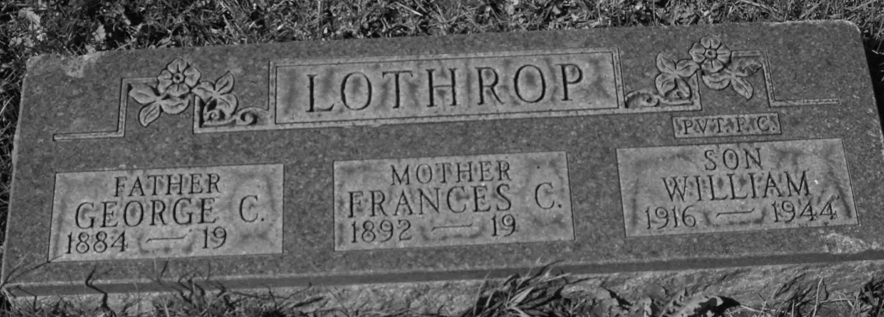 William Lothrop was born in 1916. He was the son of George C. Lothrop and Frances C. Lothrop. William served in the U.S. Army during World War II as a Private First Class in the 1st Infantry Division. He died on 1944 and is now buried in Union Ridge Cemetery, Chicago, Cook County, Illinois, USA.