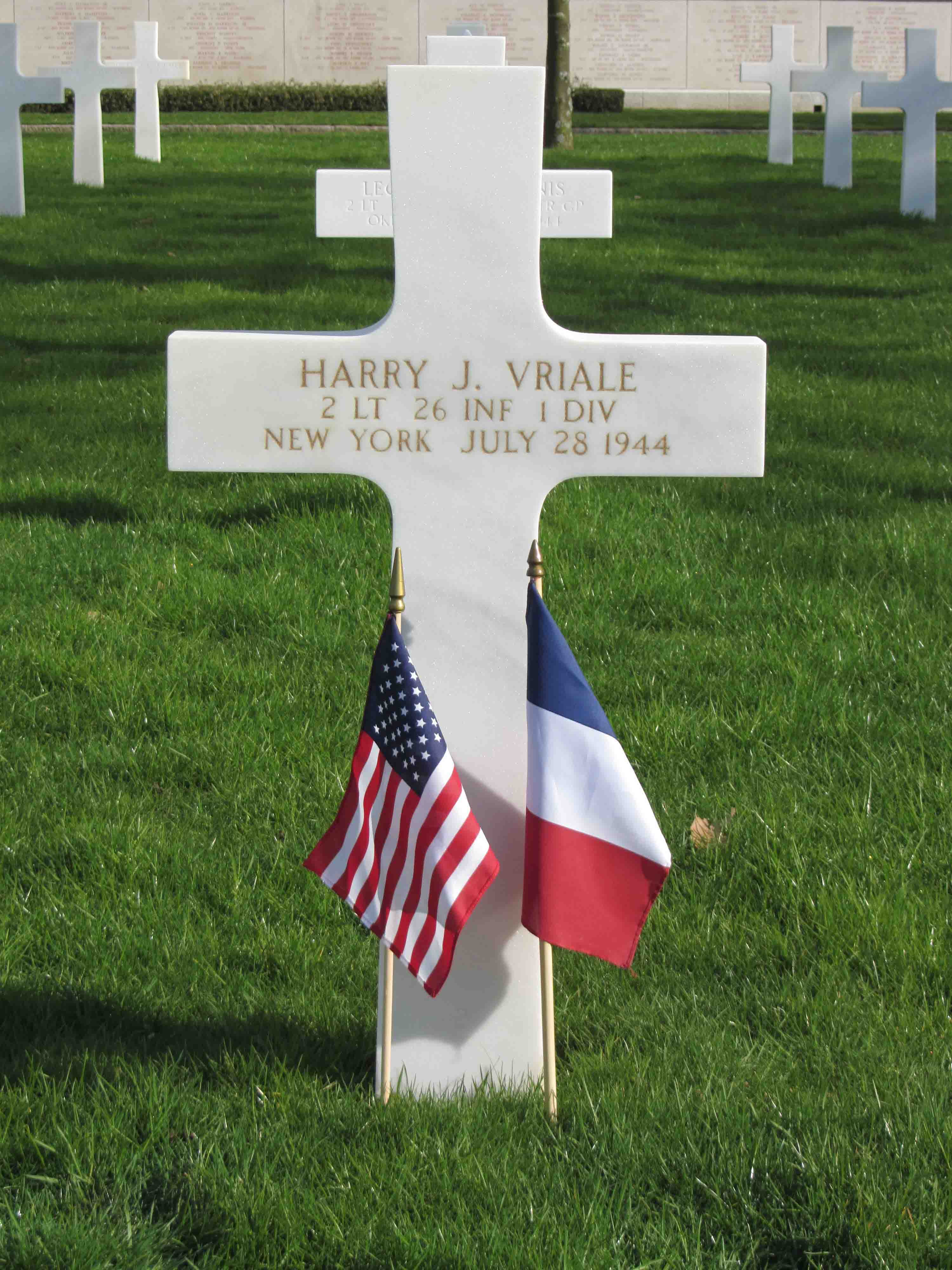 Harry J. Vriale entered the military service in New York. He served in the U.S. Army during World War II as a Second Lieutenant in the 26th Infantry Regiment, 1st Infantry Division. He died on July 28, 1944 and is now buried in Brittany American Cemetery, Montjoie Saint Martin, France.