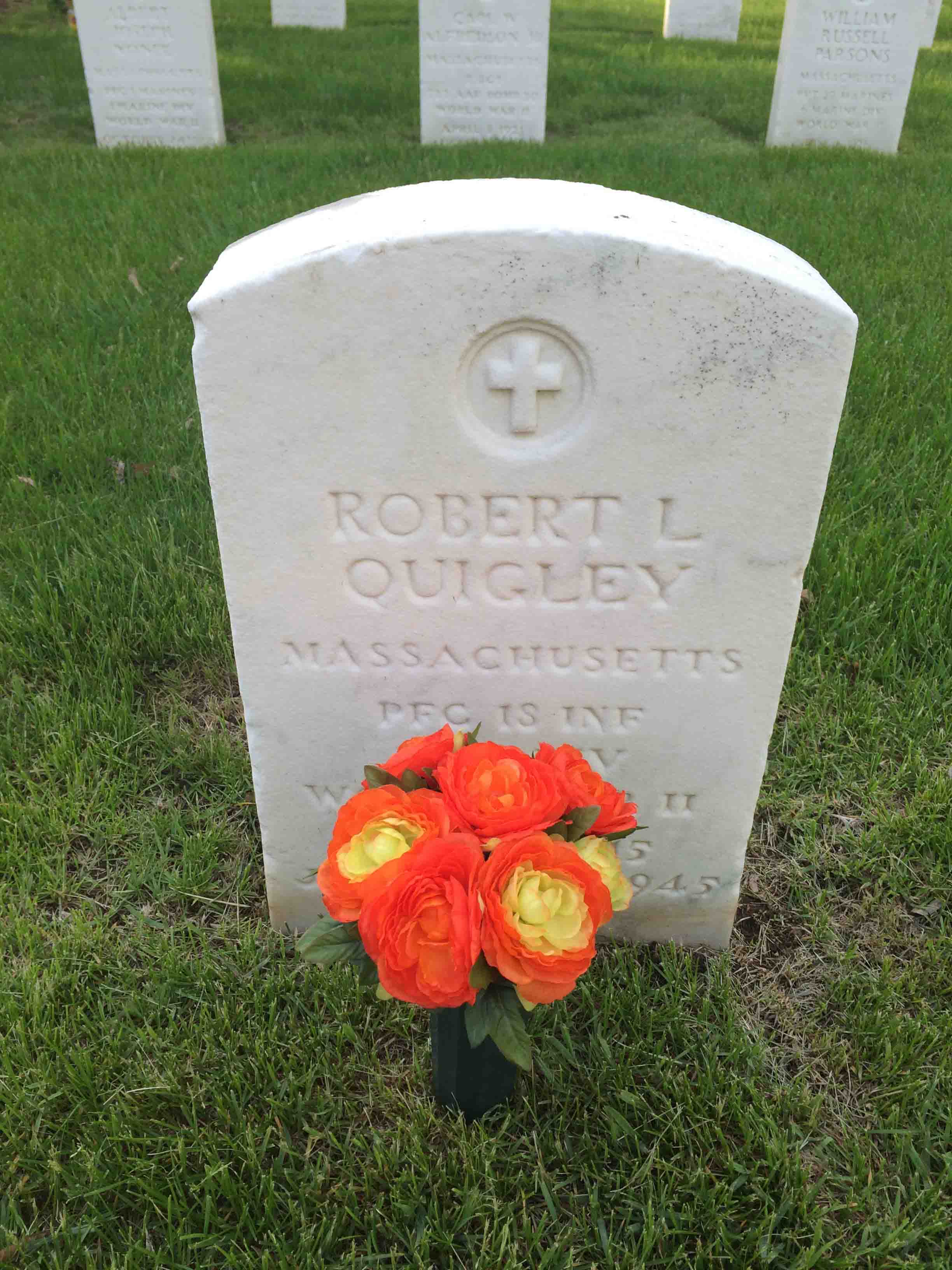 Robert L. Quigley was born on June 10, 1915 in Dorchester, Suffolk County, Massachusetts. He served in the U.S. Army during World War II as a Private First Class in the 18th Infantry Regiment, 1st Infantry Division. He died on January 15, 1945 at the age of 29 and is now buried in Newton Cemetery, Newton, Middlesex County, Massachusetts, USA.