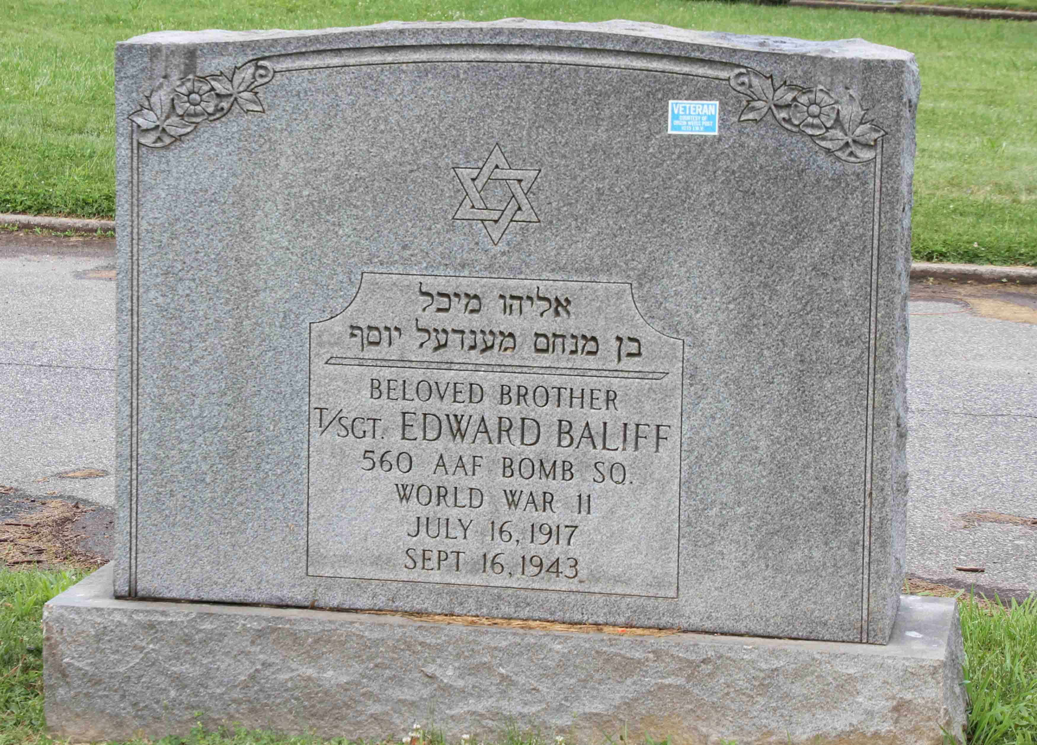 Edward Baliff was born on July 16, 1917 in Philadelphia, Philadelphia County, Pennsylvania. He served in the 560th Bomber Squadron, 388th Bomber Group, Heavy as a Technical Sergeant during World War II. He was Killed in Action on September 16, 1943 aboard A/C 42-5904 "Gremlin Gus" when it crashed into the side of a hill at North Moulton, Somerset, at 2115 hours. He is now buried in the Mount Lebanon Cemetery, Collingdale, Delaware County, Pennsylvania, USA. Edward was one of the many brave Americans of the 388th Bomber Group who lost their lives in aerial operations against the German forces from June 1943 - August 1945.