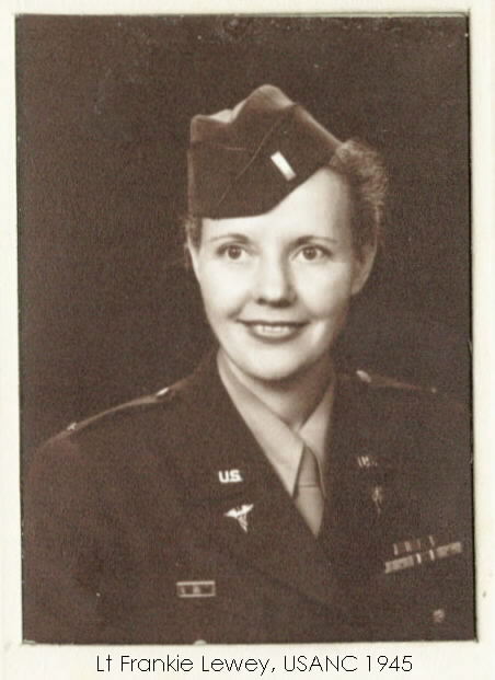 Frankie Thelma Lewey Jerrett was born on November 22, 1910 in Guymon, Oklahoma. She pursued an education and entered nursing. Frankie was one of the many nurses who worked for one dollar ($1.00) a day and a meal during the Great Depression of the 1930s. She served in the US Army Nurse Corps as a Second Lieutenant during World War II. Frankie was one of the "Angels of Bataan and Corregidor” – the US Army and Navy Nurse Corps women who served in the Battle of the Philippines in 1941-42. When Bataan and Corregidor fell, 11 Navy nurses, 66 army nurses, and 1 nurse-anesthetist were captured and imprisoned in and around Manila. They continued to serve as nurses in various POW camps until they were finally liberated in February 1945. She Frankie married Lt Francis Jerrett, one of the 1st Cavalry Division's liberators, in January 1946. She died on April 17, 1987 at the age of 76 in Tacoma, Washington and is now buried in the Willamette National Cemetery, Portland, Multnomah County, Oregon, USA.