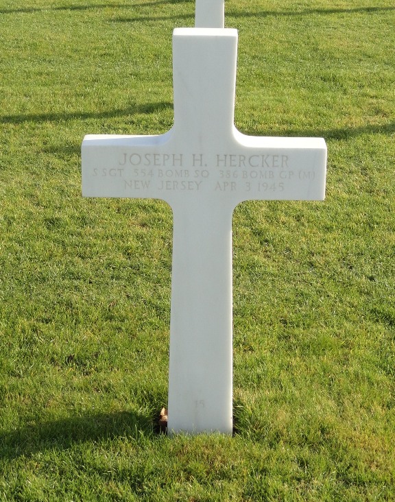 Joseph H. Hercker entered the military service in New Jersey. He served in the 554th Bomber Squadron, 386th Bomber Group, Medium as a Staff Sergeant during World War II. SSGT Hercker died on April 3, 1945 and is now buried in the Netherlands American Cemetery, Margraten, Netherlands.