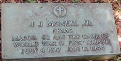 J. J. McNeil served in the 8th Squadron of the 62nd Troop Carrier Group. He was born on July 4, 1917 and was from Texas. On January 12, 1944, he was a crewmember aboard a Special Operation C-47 Skytrain ( 41-18681) with the mission of air dropping soldiers of the British 2nd Regiment of the Special Air Services (SAS) team to attack a German airfield (Sant Egidio Airfield outside Peruguia, Italy). After successfully dropping the six-person SAS team, the C-47 Sky Train crashed on Monte Tezio resulting in complete loss of life. The Crew consisted of: