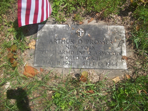 Arthur D. Prosser was born on May 11, 1921. He served in the 41st Armored Infantry Regiment, 2nd Armored Division as a Private First Class during World War II. He died on September 19, 1944, at the age of 23, and is now buried in the Maple Hill Cemetery, Taberg, Oneida County, New York, USA. PFC Prosser was one of the 65 soldiers killed in battle during the liberation of the Limburg region of the Netherlands and Belgium.