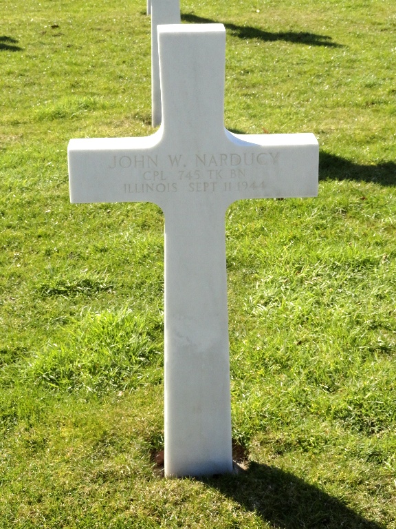 John Narducy was born on August 8, 1921 in Cook County, IL. He entered the military service in Illinois. He served in the U.S. Army during World War II as a Corporal in the 745th Tank Battalion. He died on September 11, 1944 and is now buried in Henri-Chapelle American Cemetery, Belgium.