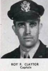 Roy Frank Claytor Sr. was born on January 21, 1917, in Bessemer, Jefferson County, Alabama. He was the son of Roy Festus Claytor. He was married to Mary Lunita Johnson Claytor. He studied Agricultural Engineering at Auburn University before joining the Army in 1941. He served in the 350th Bomber Squadron, 100th Bomber Group, Heavy, as a Lieutenant and Pilot of B-17 #42-5867 also known as 'Alice From Dallas' during World War II.
