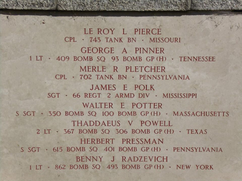 Cpl Pletcher was reported Missing in Action and officially declared dead on August 18, 1944, during the liberation of Argentan, France. His name is memorialized in the Tablets of the Missing in the Brittany American Cemetery and Memorial, Saint-James, Departement de la Manche, Basse-Normandie, France.