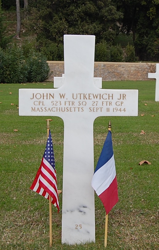 Cpl John W. Utkewich, Jr., passenger on the B-25 Mitchell 42-87440, took off from Salon-de-Provence on a transport mission to Loyettes. While the flight passed without incident, the heavy fog hanging in the area hid the hill on their landing approach. The plane crashed into the hillside, killing all inside.