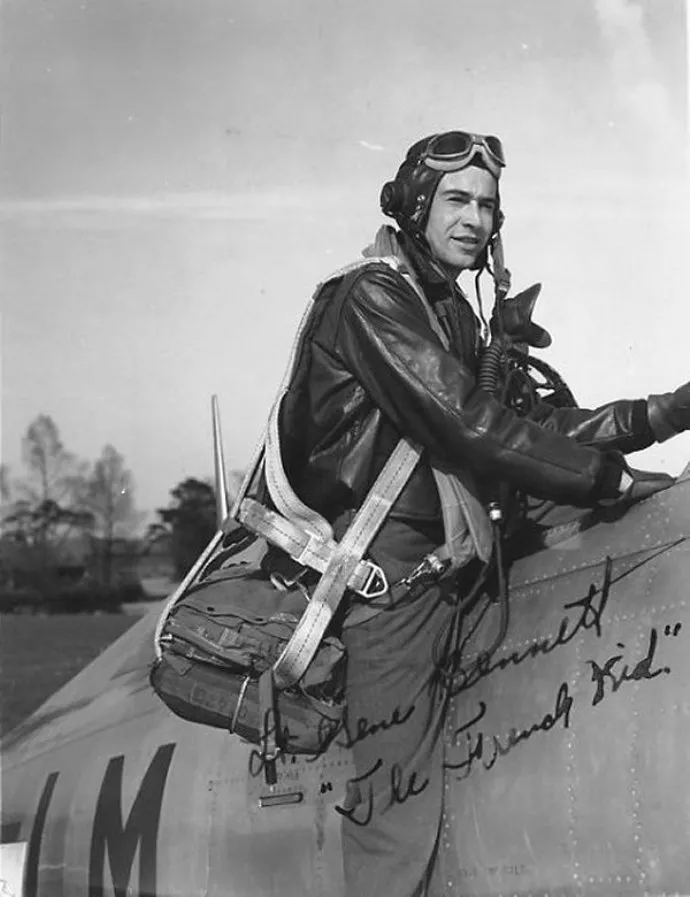 2nd Lt Eugene E. Bennett, pilot of the P-47 Thunderbolt 42-76254, took off from station 150 in Boxted, Essex, UK on a strafing mission over the Evreux airfield. He was shot by flak at 0645 and bailed out at 1000 feet when his engine caught fire. Pulling his chute at 800 feet, he landed in a field where he hid his equipment. A local farmer brought him to his house where he hid for a week. He was then brought to a farm owned by an Englishman but was seen by the SS and ended up living with the Resistance for a few months, moving every few days. Cpt Beaman joined him until the Allies linked up with their position. He returned to the UK on August 8th 1944. His full E&E report #894 can be read at http://media.nara.gov/nw/305270/EE-894.pdf.