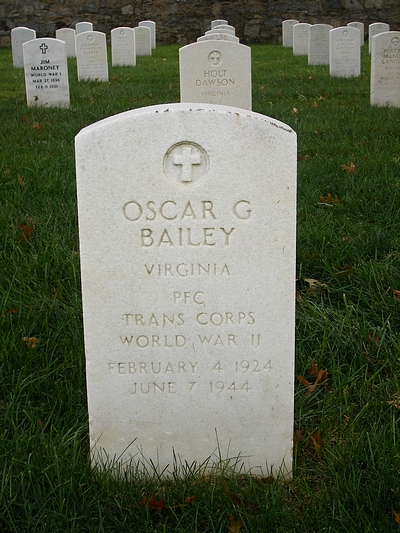 Oscar G. Bailey was born on February 4, 1924. He served in the 5th Engineer Special Brigade as a Private First Class during World War II. He died on June 7, 1944 at the age of 20 and is now buried in the Richmond National Cemetery, Richmond, Henrico County, Virginia, USA.