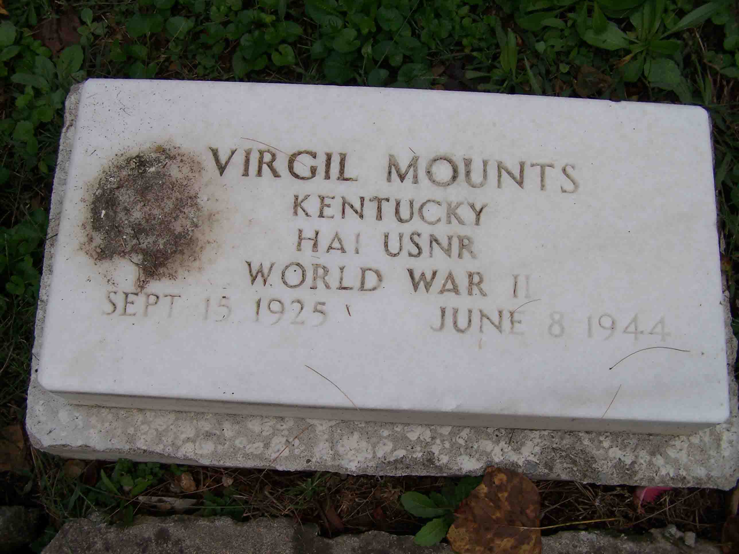 Virgil Mounts was born on September 15, 1925. He was the son of William Harrison Mounts and Nancy Louise Hackney Mounts. Virgil served in the 6th Naval Beach Battalion as a Hospital Apprentice 1st Class during World War II. He died on June 8, 1944 at the age of 18 and is now buried in the Coeburn Point Cemetery, Huddy, Pike County, Kentucky, USA.
