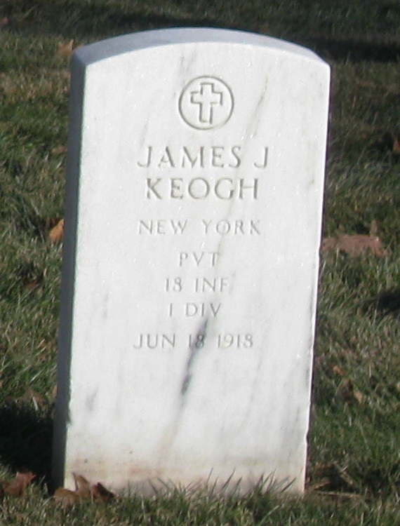 James J. Keogh served in the U.S. Army during World War I as a Private in Company F, 18th Infantry Regiment, 1st Infantry Division. He died on June 18, 1918 and is now buried in Arlington National Cemetery, Arlington, Arlington County, Virginia, USA.