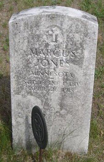 Marcus Jones was born on August 2, 1893. He enlisted in the Army on December 24, 1916 in Minneapolis. He served in the U.S. Army during World War I as a Sergeant in Company G, 18th Infantry Regiment, 1st Infantry Division. He died on April 26, 1918 and is now buried in Parfreyville Cemetery, Parfreyville, Waupaca County, Wisconsin, USA.