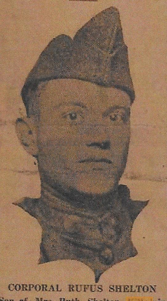 Rufus Alexander Shelton was born in 1898. He served in the U.S. Army during World War I as a Corporal in Company L, 28th Infantry Regiment, 1st Infantry Division. He was Killed in Action on May 28, 1918 and is now buried in Oakwood Cemetery, Honey Grove, Fannin County, Texas, USA.