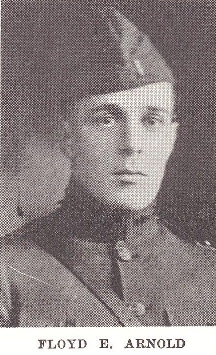 Lieutentant Arnold received his commission at Fort Niagara in November 1917, and was detailed for immediate overseas duty, partaking in seven major operations of the First Division. During the Aisne-Marne Offensive, he went ""over the top"" for the seventh time in command of Company G. Wounded in the right temple and also the ankle, he was exposed to mustard gas and removed to a hospital. He contracted pneumonia from the weakened state of his lungs due to gas. He received citations from both the French and American governments for courage and valor under fire. He died on November 18, 1918 at the age of 26 and is now buried in Tioga Point Cemetery, Athens, Bradford County, Pennsylvania, USA.