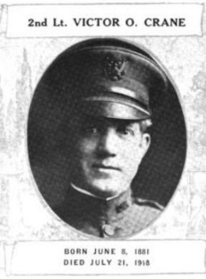 Victor O. Crane was born on June 8, 1881 in North Dakota. He was the son of Mrs. J. M. McClean and unmarried. He entered the military service in Missouri and served in the U.S. Army during World War I as a Second Lieutenant in the 26th Infantry Regiment, 1st Infantry Division. He was Killed in Action near Soissons but declared "Missing" on July 19, 1918 and is memorialized on Tablets of the Missing, Aisne-Marne American Cemetery, Belleau, France.