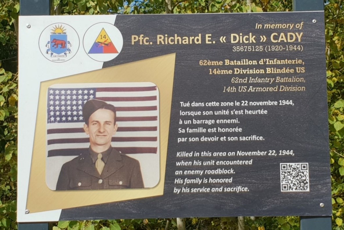 PFC Richard E. Cady Plaque -14th Armored Divsion
