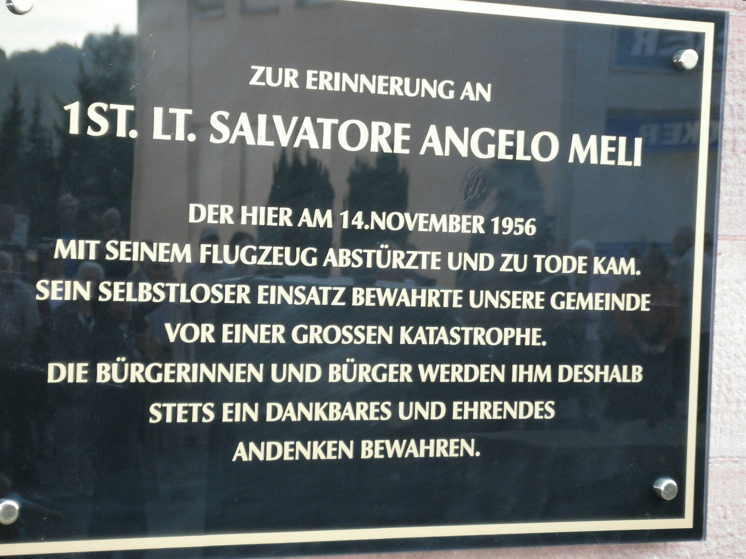 The city hall holds a commemorative plaque for 1LT Salvatore Meli of the United States Air Force. Source of photo: https://de.m.wikipedia.org/