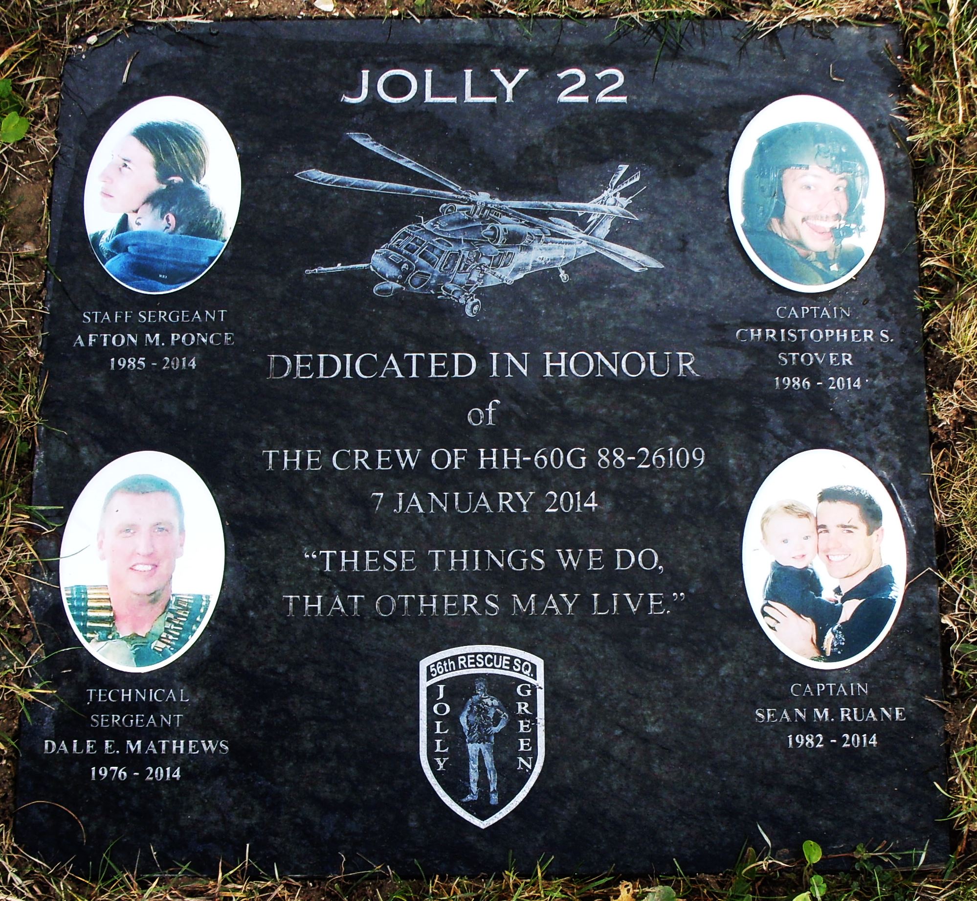 The site contains a plaque to a HH-60G Pave Hawk of the 56th Rescue Squadron.