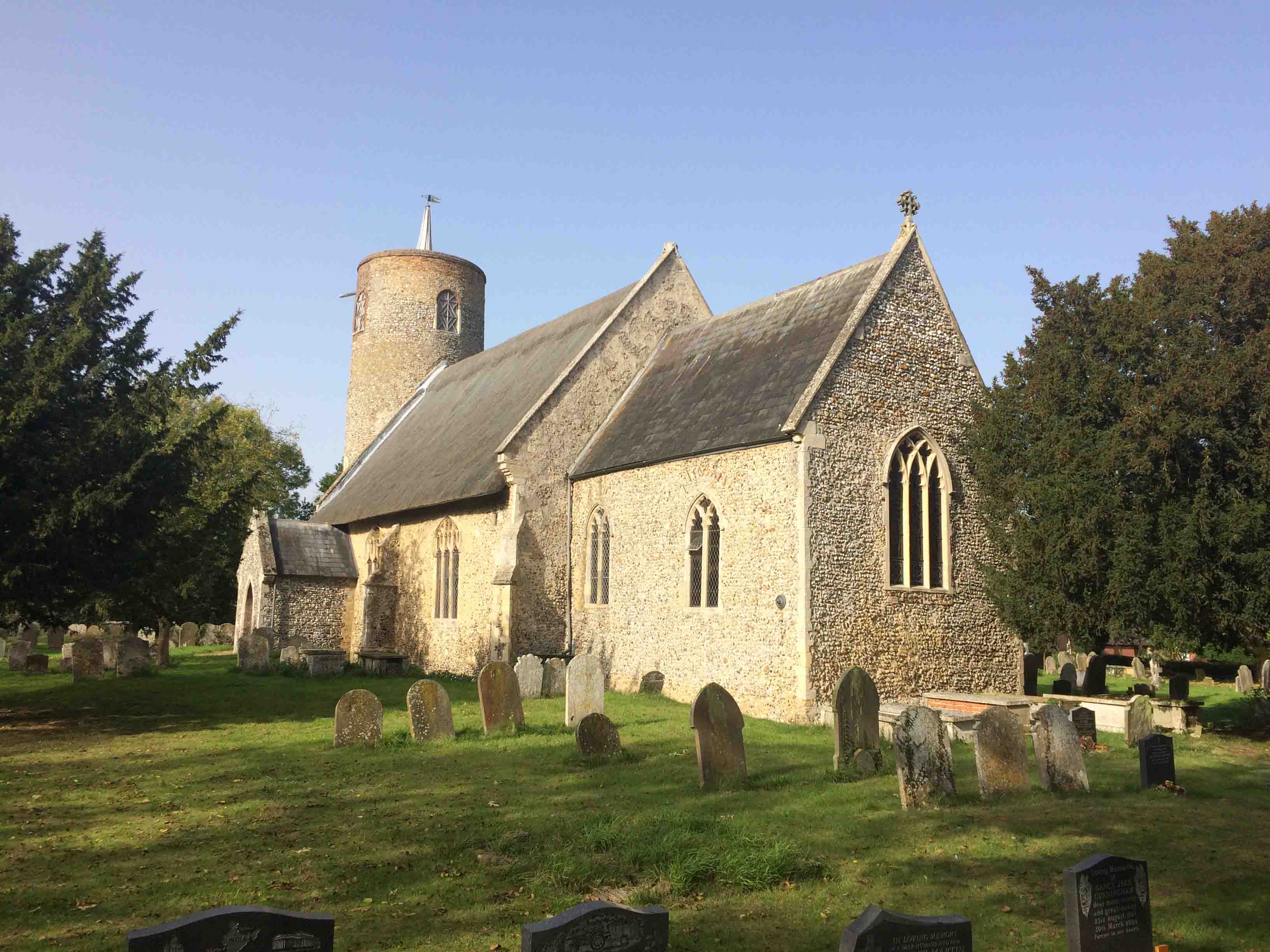 On the north side of the village, the church is situated in between the School Road, Brooke Road, and the Seething Road. On the street to the west of the church is the Seething and Mundham Primary School.