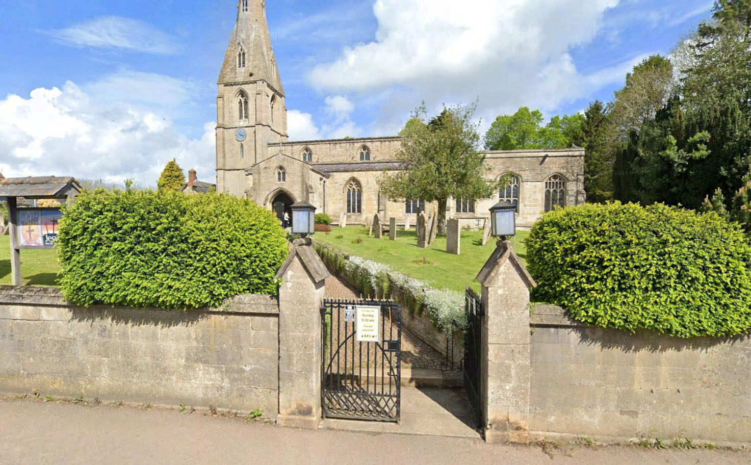 St. Nicholas’ Church in Cottesmore is situated on the west side of the village center. The entrance gate of the church is located on the north side of B668/Main Street opposite the The Lease junction.