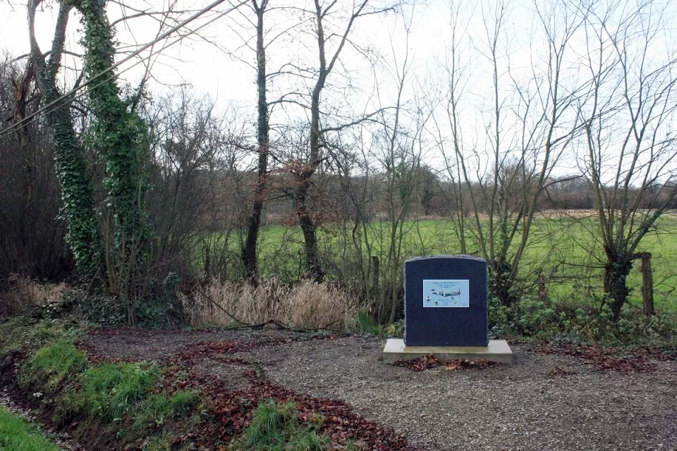 At La Dibois. Take the D80 towards Bonnemain, the stele is positioned on the right, slightly set back from the road, very close to where the P-51 of 2nd Lt Harvey fell. The site is over 5kms south of Baguer-Morvan town center.