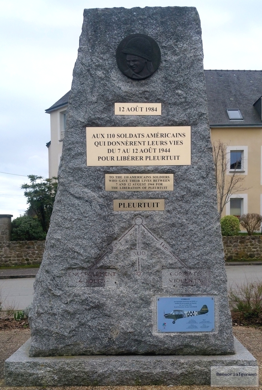 On the American monument, there is a plaque attached in memory of the Piper L-4 aviators who were killed during the liberation of the town in World War II.