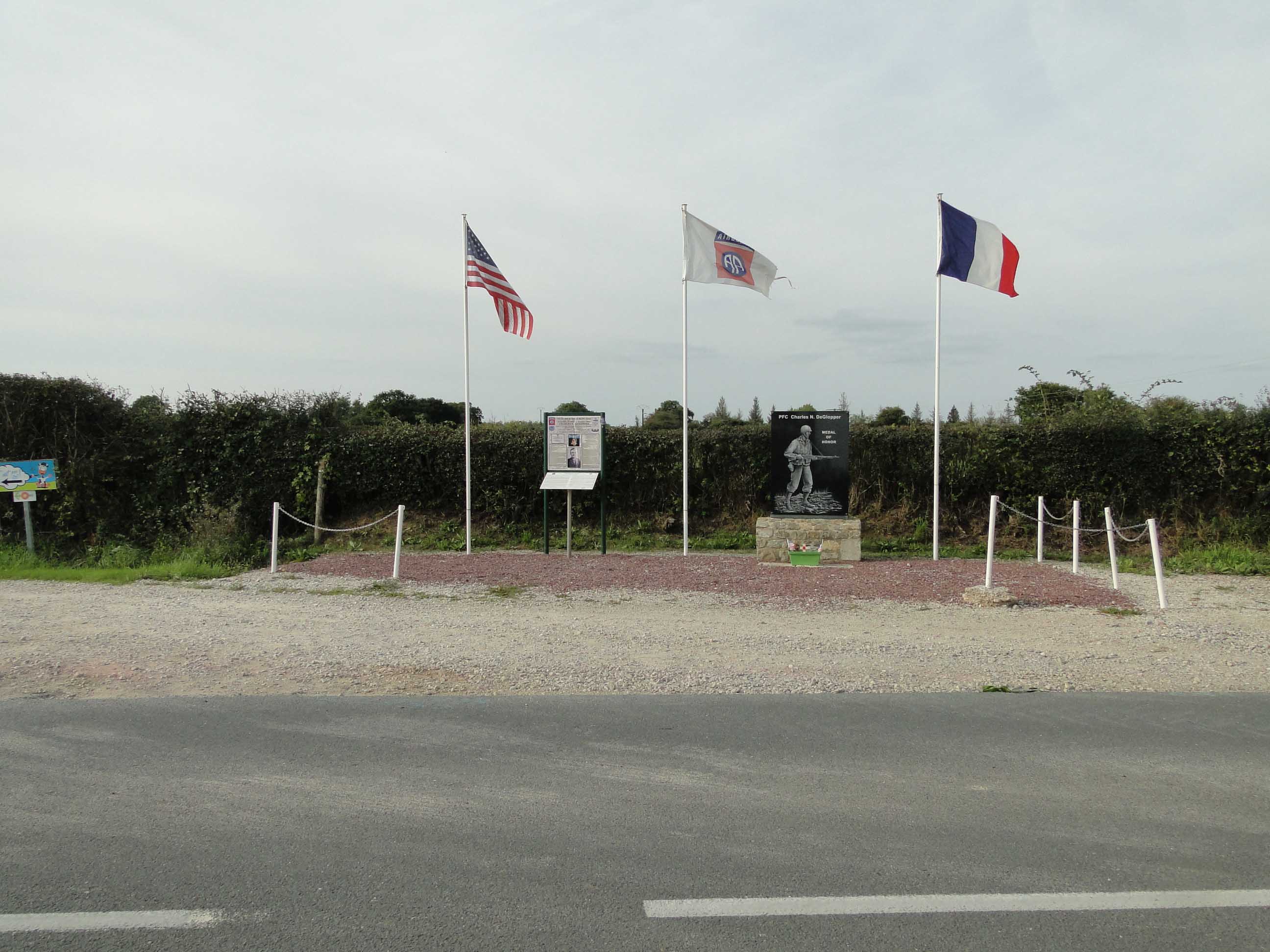 The site is situated on the northeastern outskirts of Picauville about 3.3 km from the town center. This is located along D15/Route du Hameau Flaux at the entrance of the Les Bouilles de Cauquigny farm. 1 km east of this site is the La Fiere memorial park where he has another memorial.