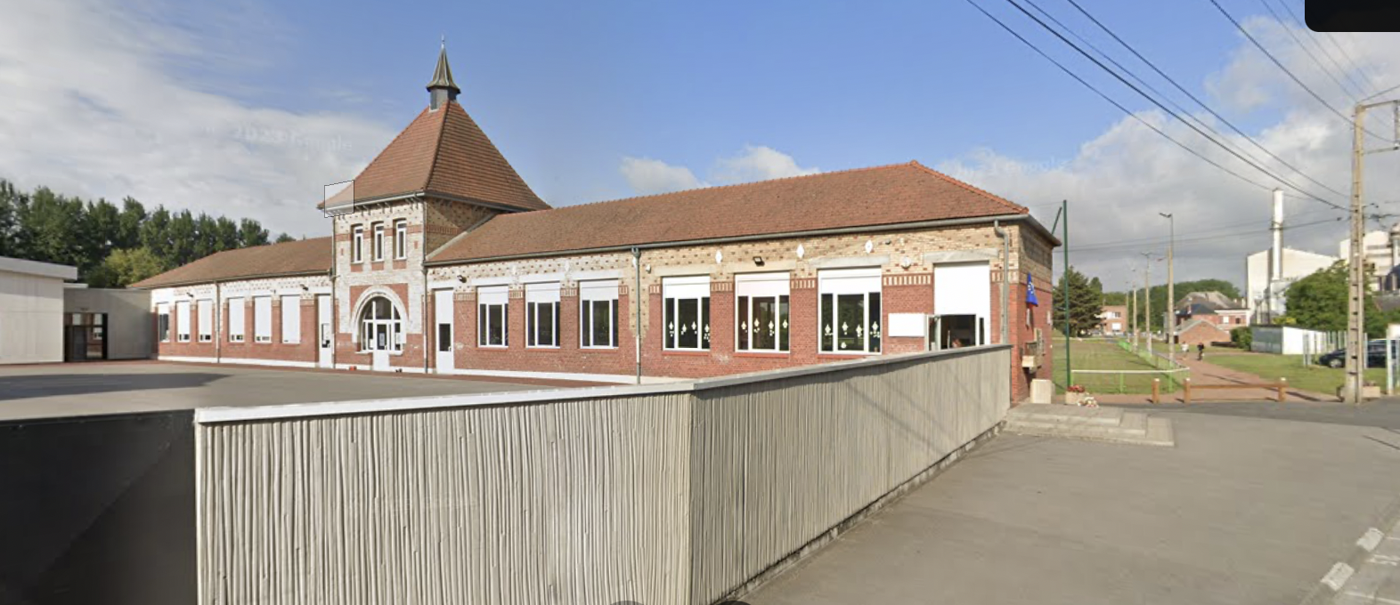 The site is located on the outside of the elementary school (école Hostetter) of Masnières, France. The site is located east of D644 and north of the San Quentin canal.The site is located on the side of the building.