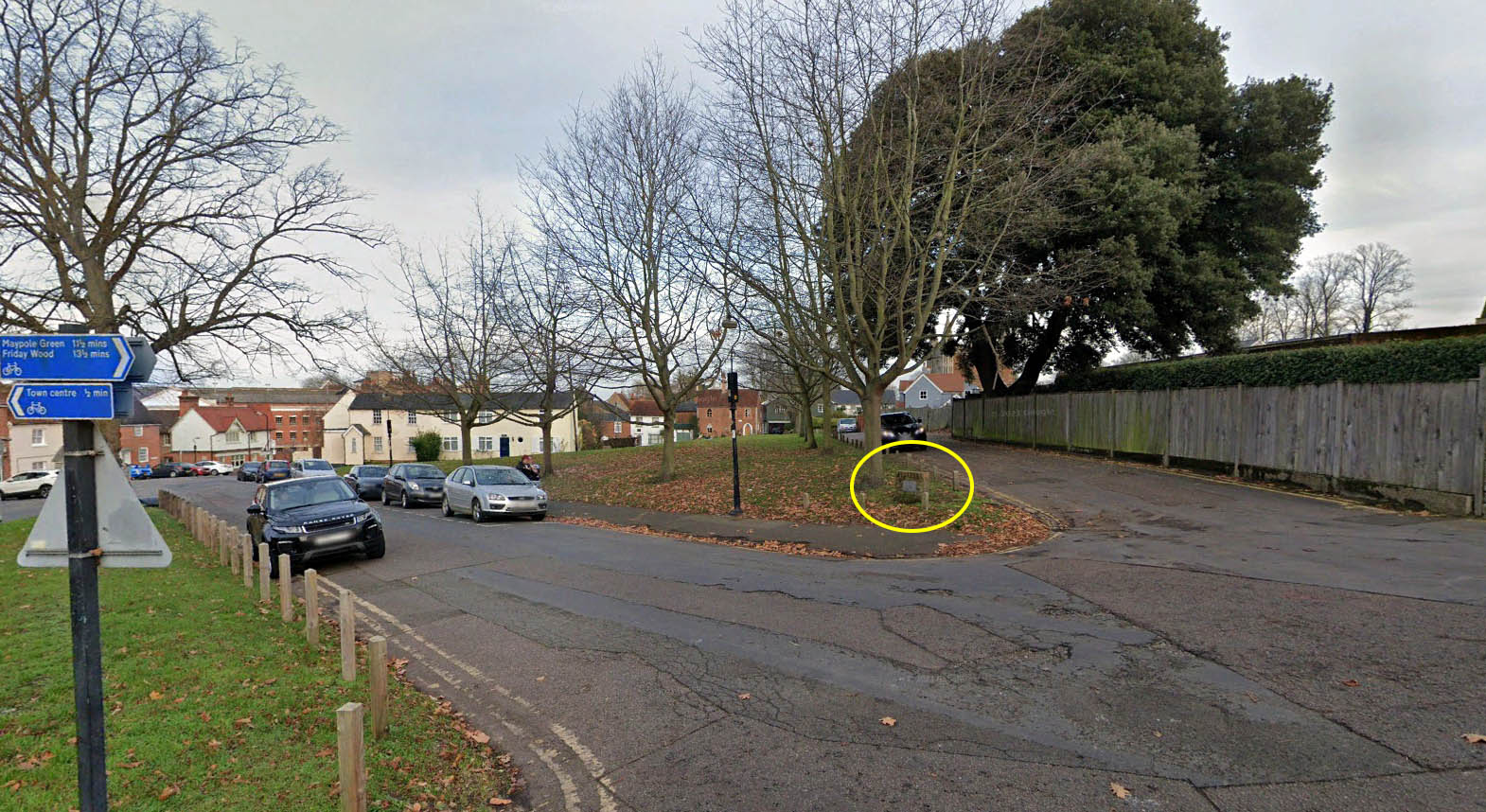 Situated on the south side near Colchester center, the memorial site is located at St. John’s Green, about 210 meters south of the junction with A134.
